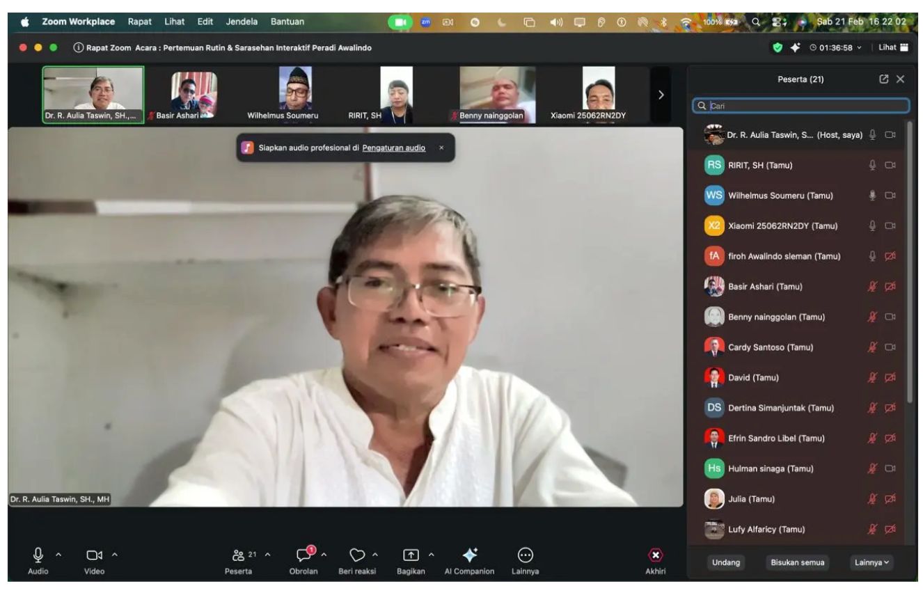 Organisasi advokat Peradi Awalindo menggelar Sarasehan pada Sabtu, 21 Februari 2026 pukul 15.00 WIB dengan fokus pembahasan peran dan prosedur saksi mahkota berdasarkan ketentuan terbaru dalam Undang-Undang Nomor 20 Tahun 2025 tentang KUHAP.